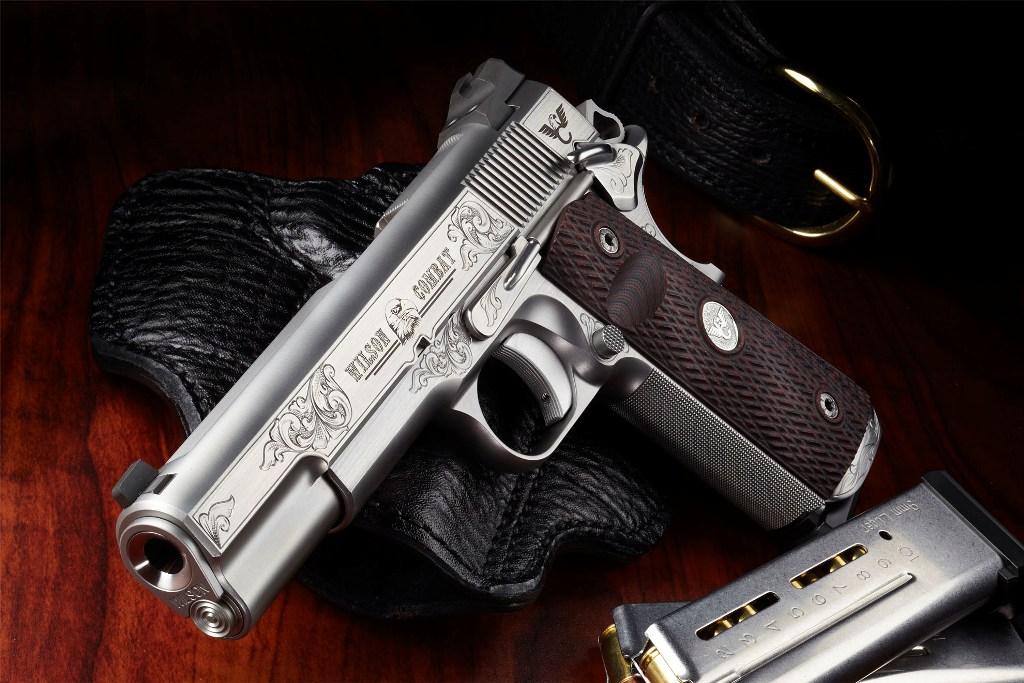 Wilson Combat Black Cherry Slant Grips with Sterling Medallions