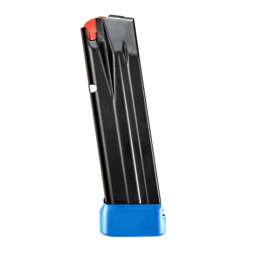Standard Walther 15 round PPQ M2 magazine with aluminum +2 capacity extension and extra power spring. Made to fit with the Walther Aluminum Magwell that comes installed on the Steel Frame Pro series. Can be used with any PPQ M2 9mm model.