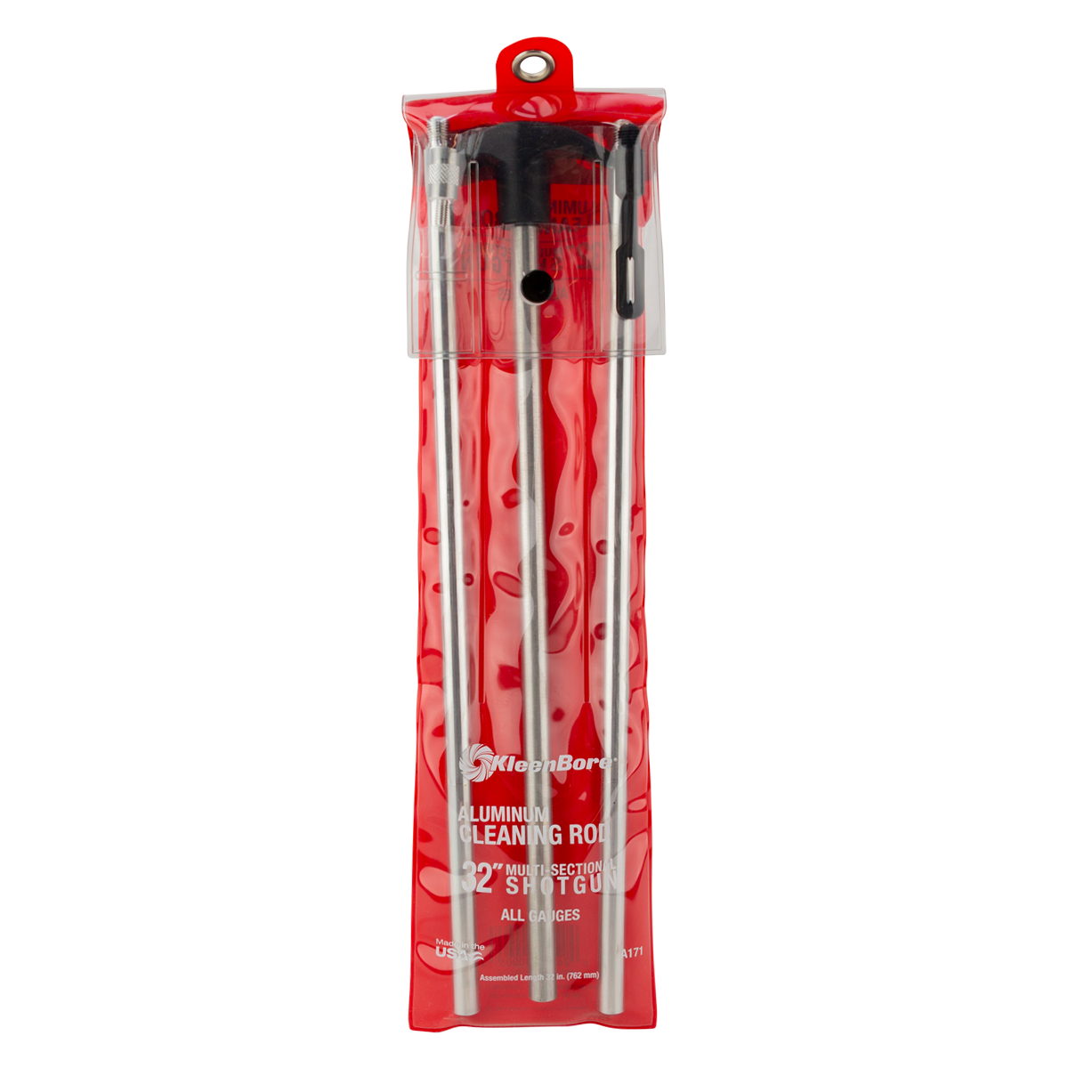 Kleen-Bore All GAUGE SHOTGUN multi-section rods are packaged in a tough, compartmentalized vinyl pouch that is reusable and easy to store. 32″ aluminum cleaning rod with durable fixed t handle.
