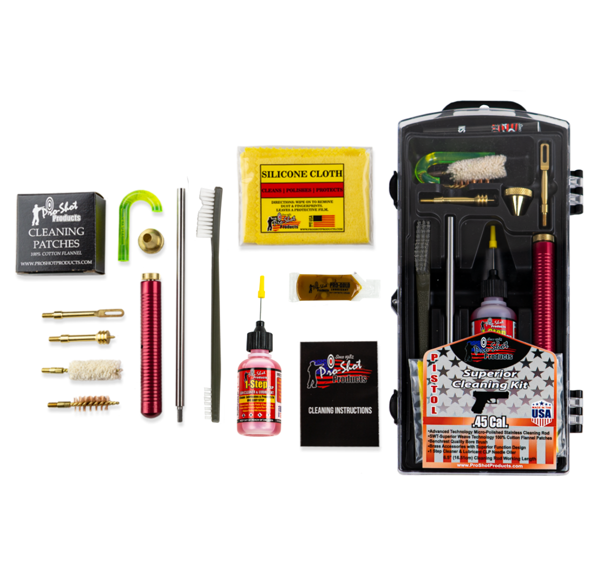 .45 Cal. Pistol Kit contains the following: Made in USA